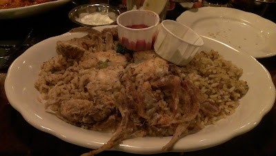I have never eaten at Pappadeaux before, and so when we went tonight, I was excited to try out some new food! I ordered the pan fried soft shell crab over rice.